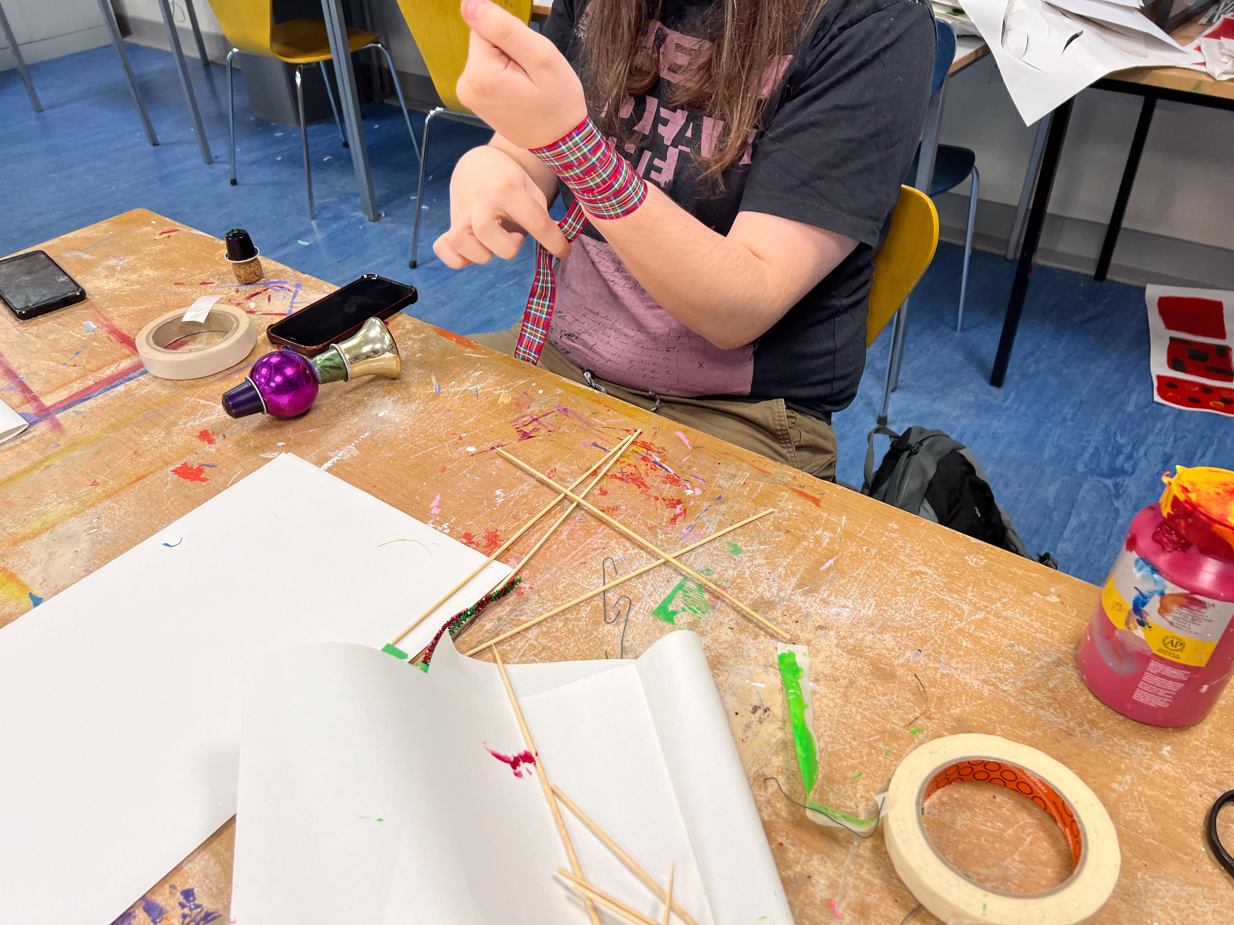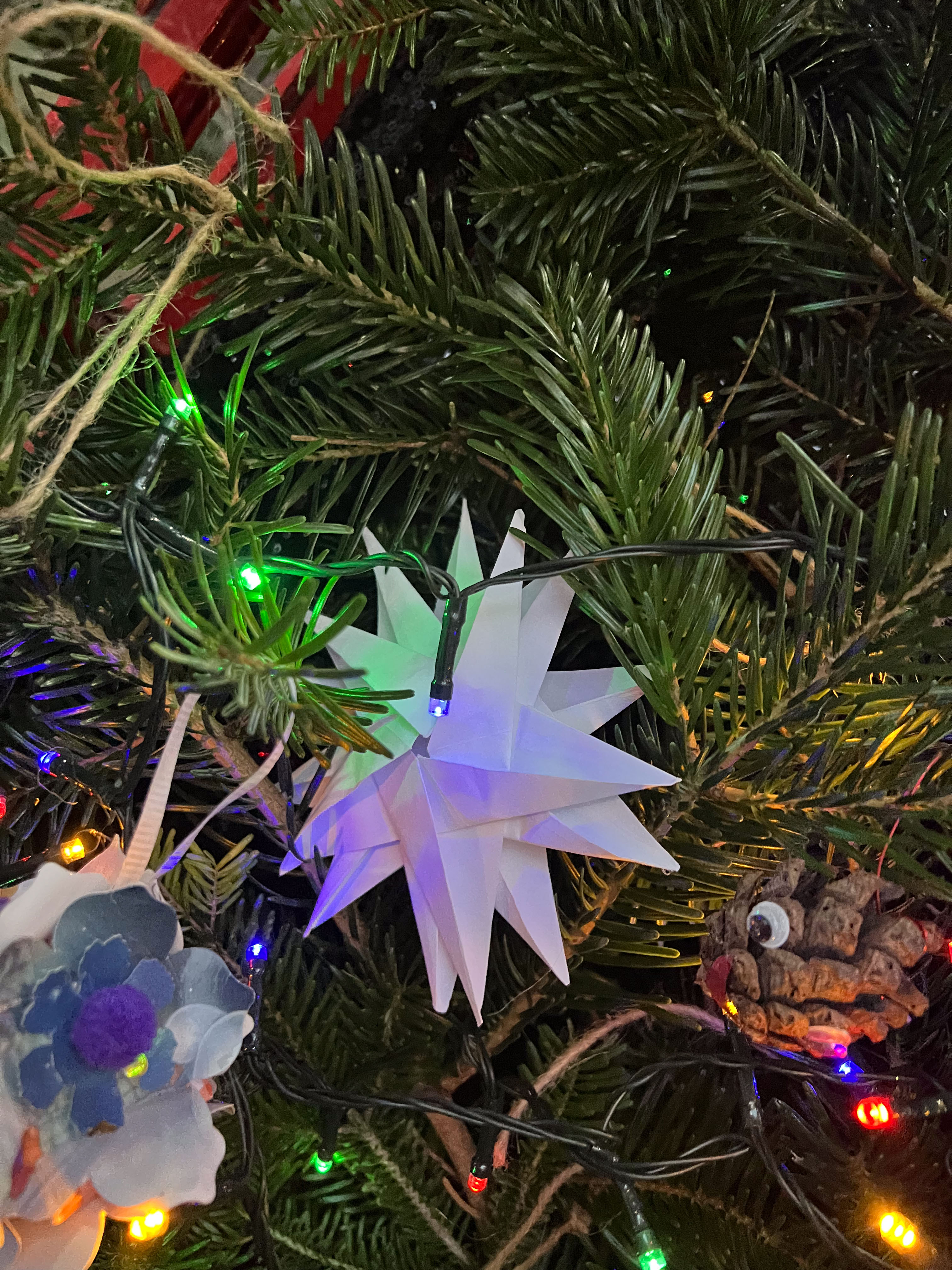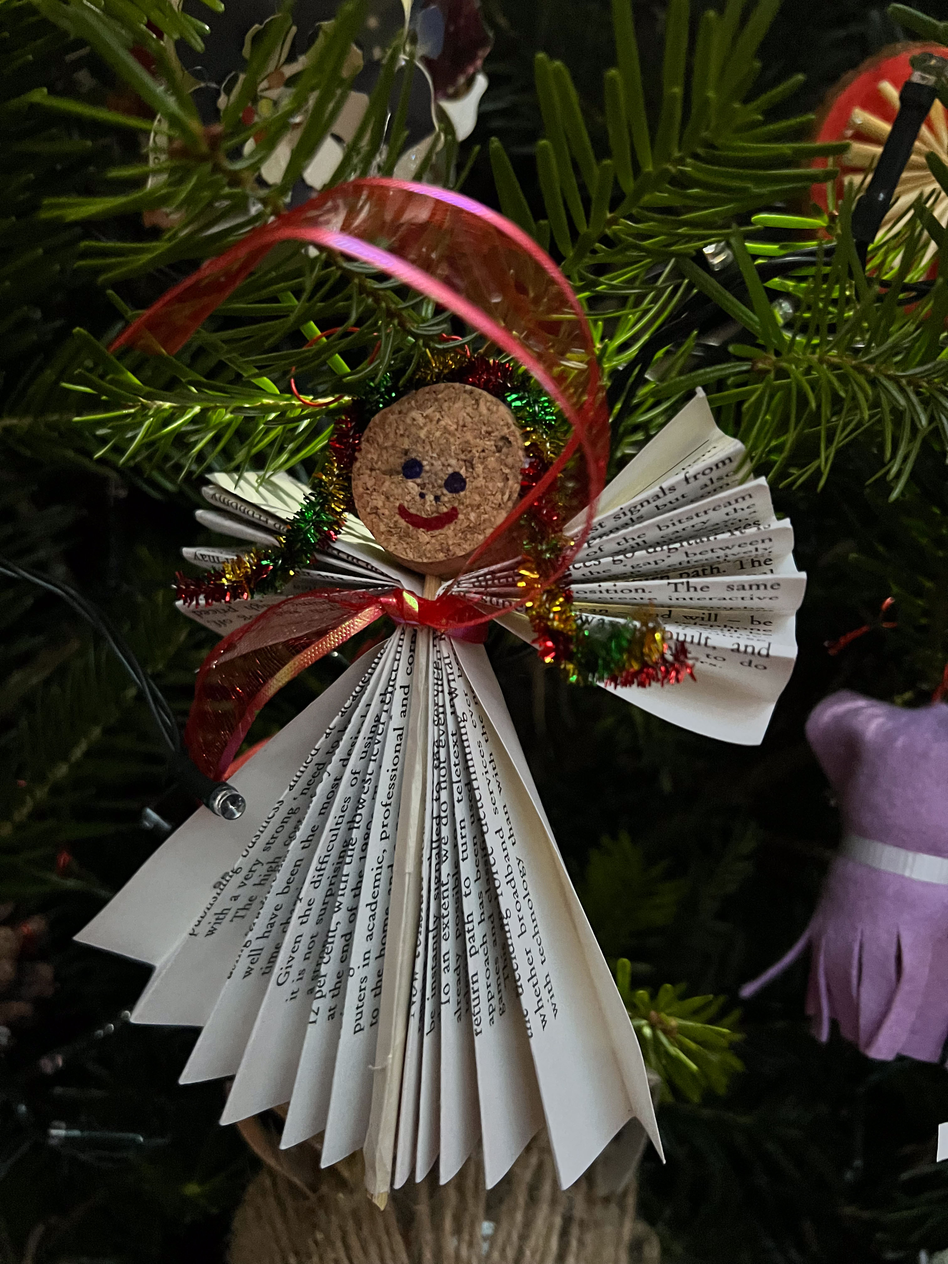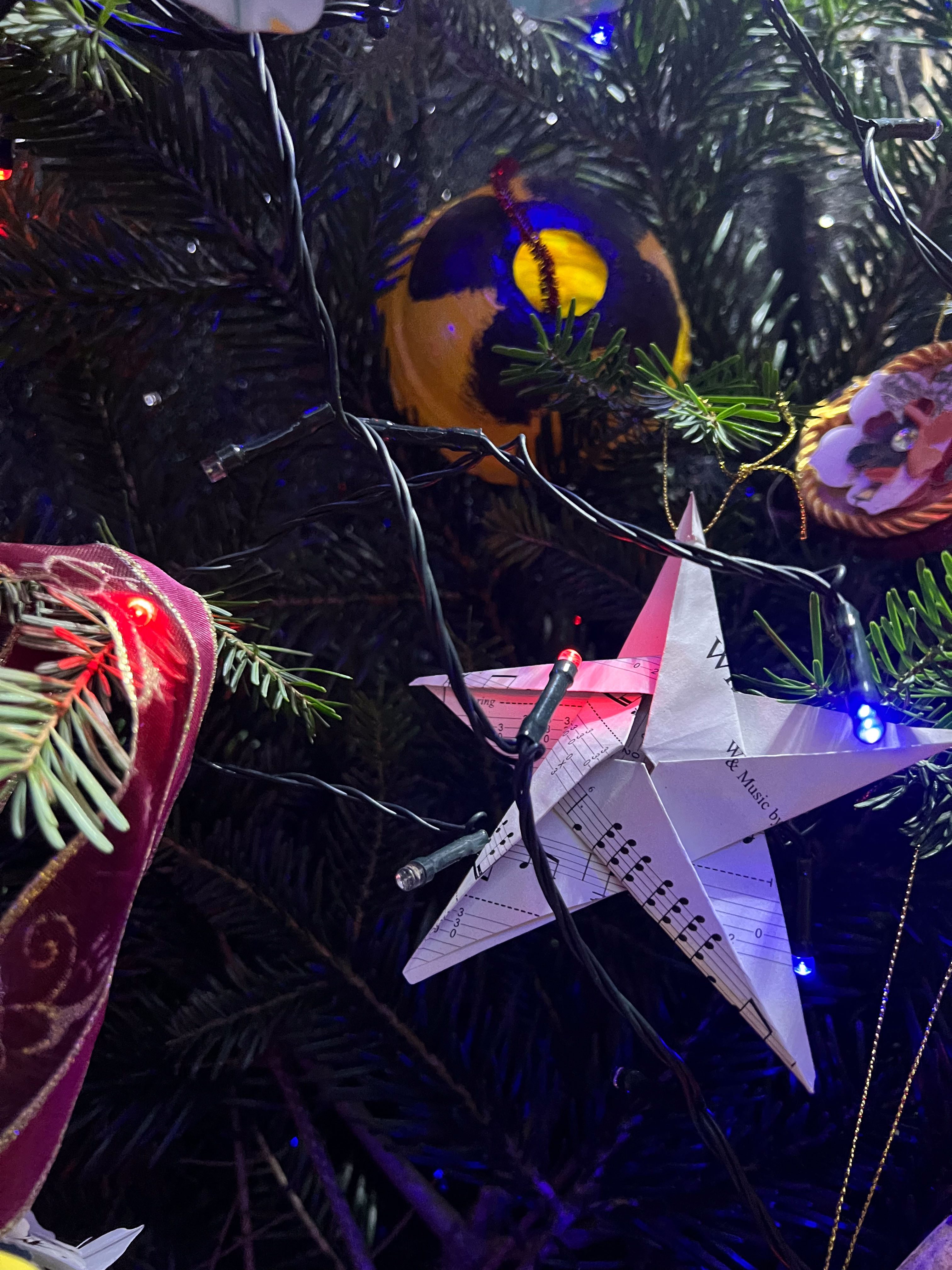 With the environmental crisis and the economic struggles that people are facing this holiday season, UHI Perth Gateway to Creative Industries (Art and Music), HNC Contemporary Art Practice students and members of the Culture Club art club have created wonderful holiday decorations from household waste, old damaged books, broken decorations, leftover craft materials, old fabrics and biodegradable glitter to demonstrate cost-effective and fun to make alternative decoration solutions. Even the batteries used for the lights are rechargeable. This is to inspire people to have fun making their own.