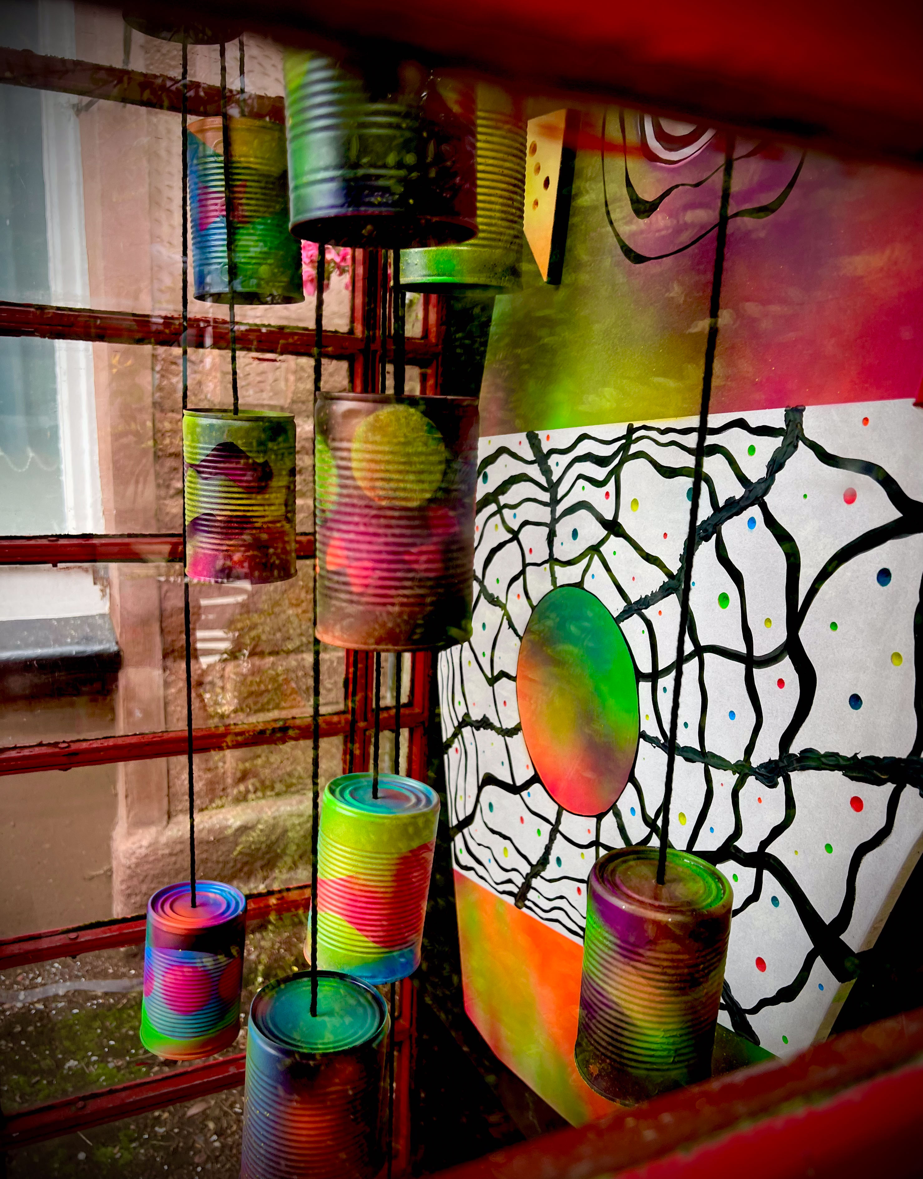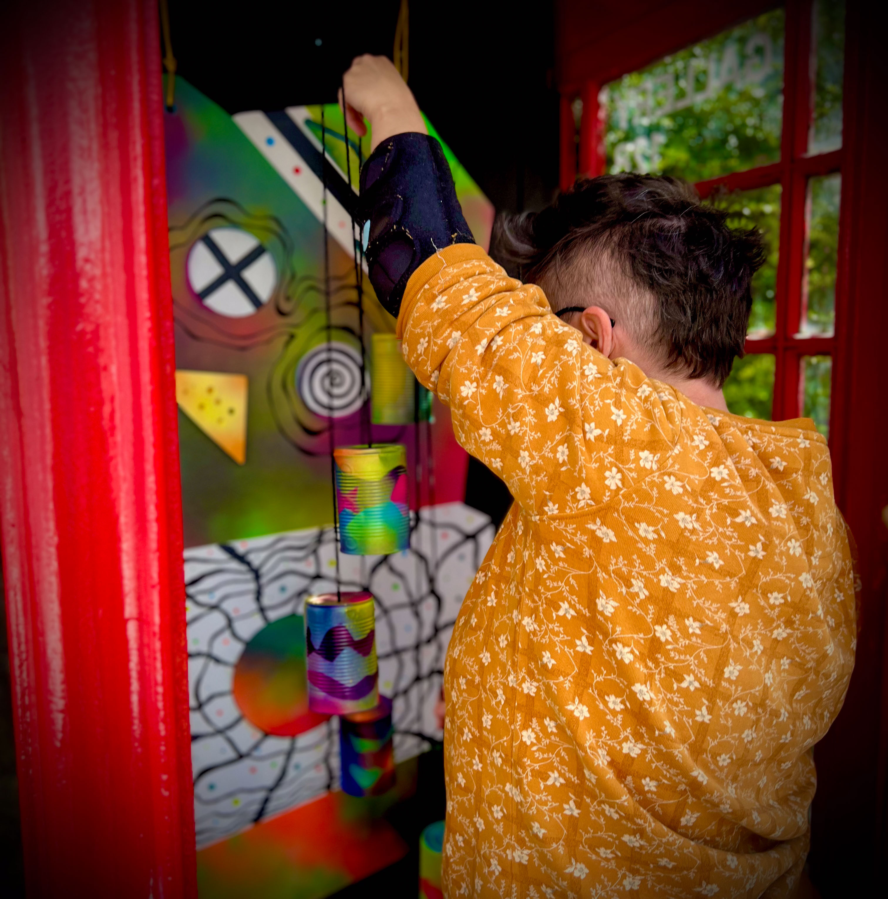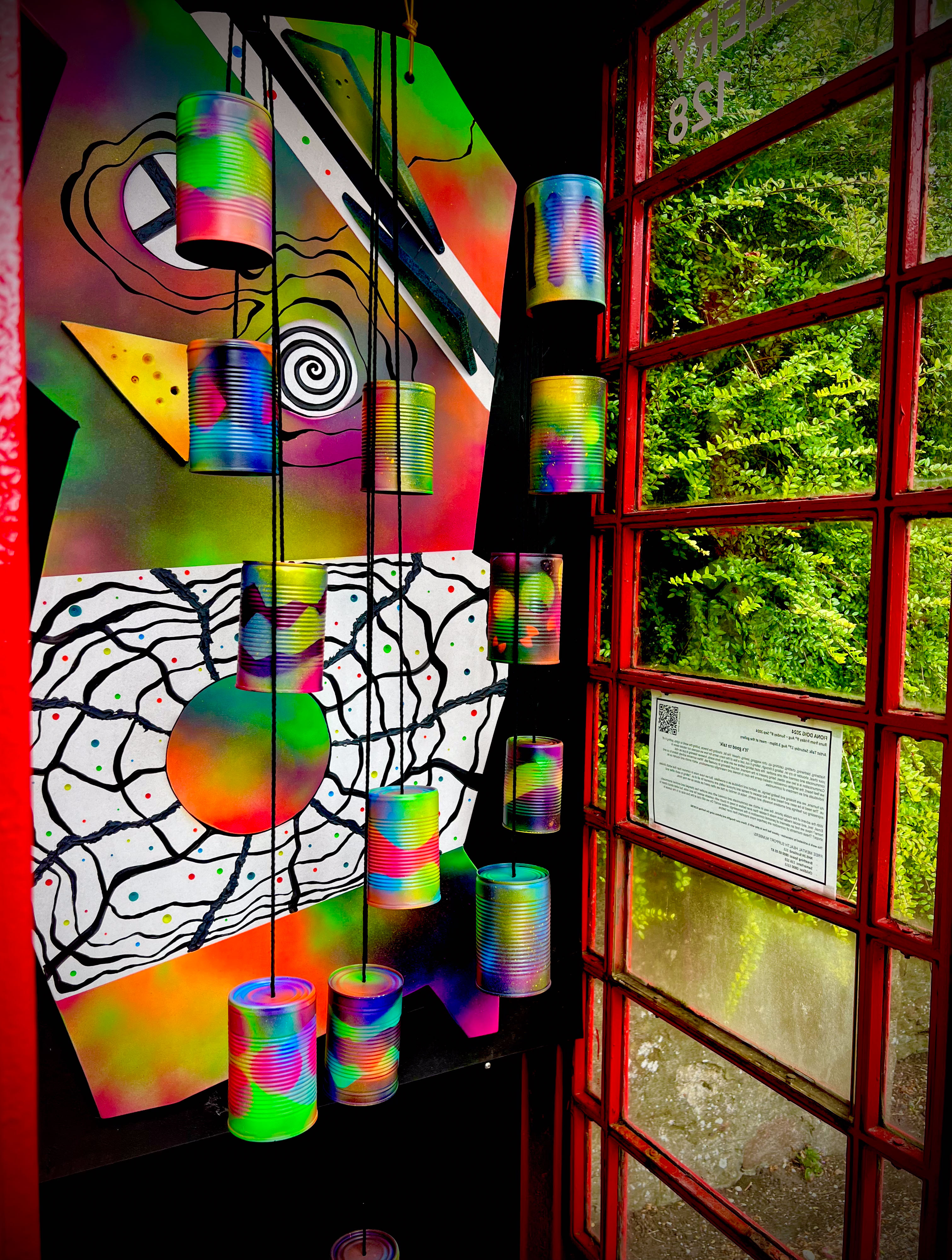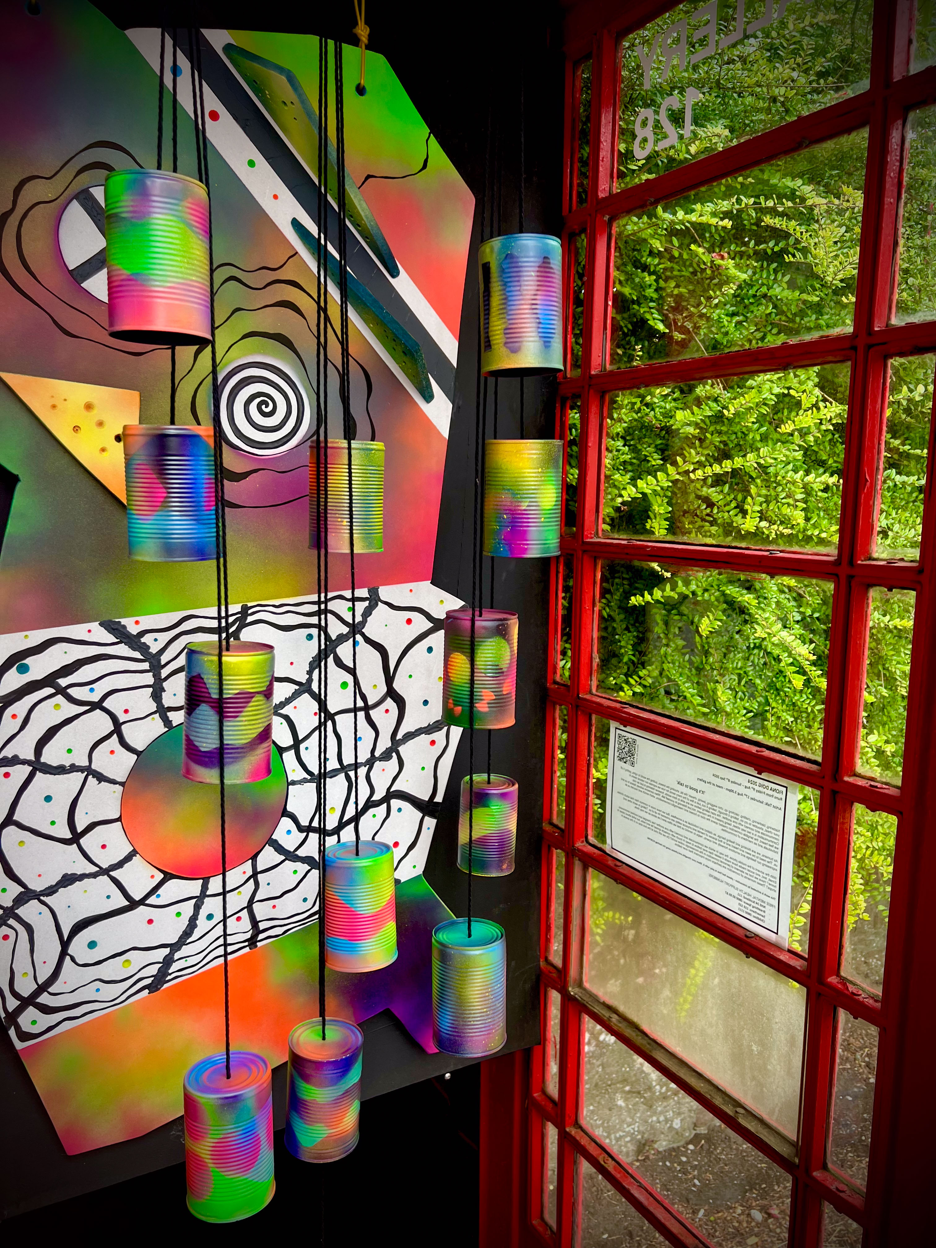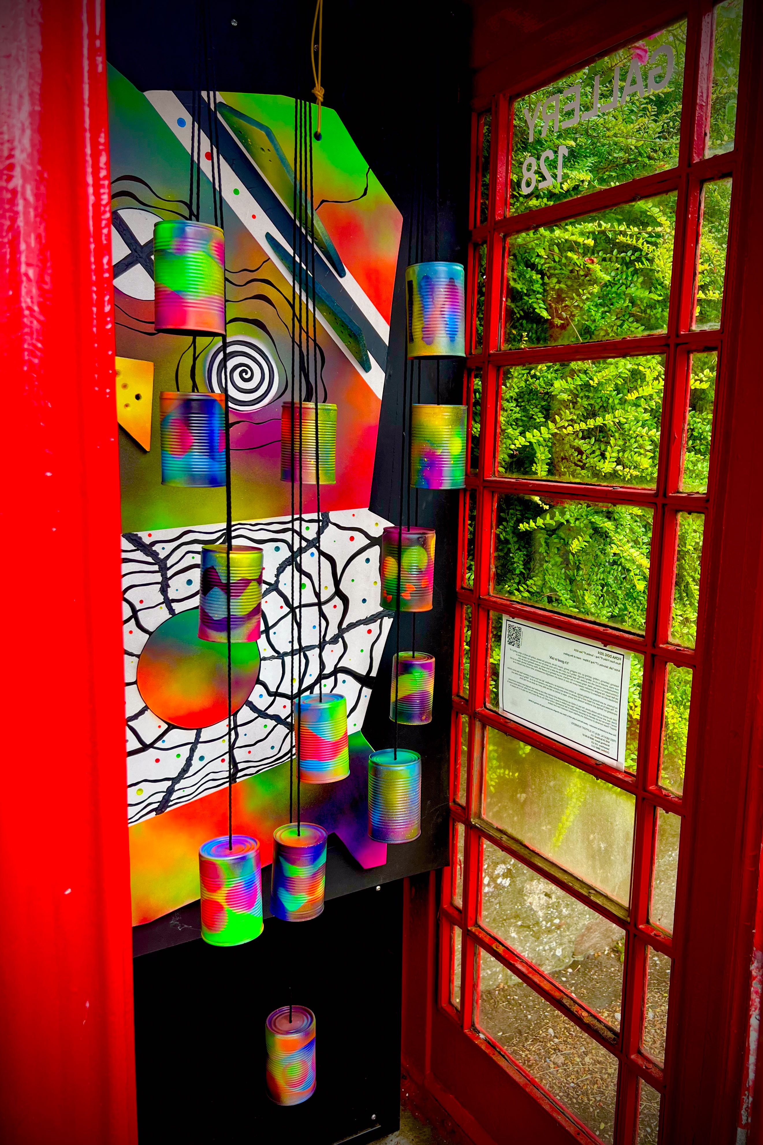 This artwork is designed to be interacted with. Try using the cans to listen to someone. (Access to the gallery from the 17th August). Share your thoughts and images using the hashtag #128TBG