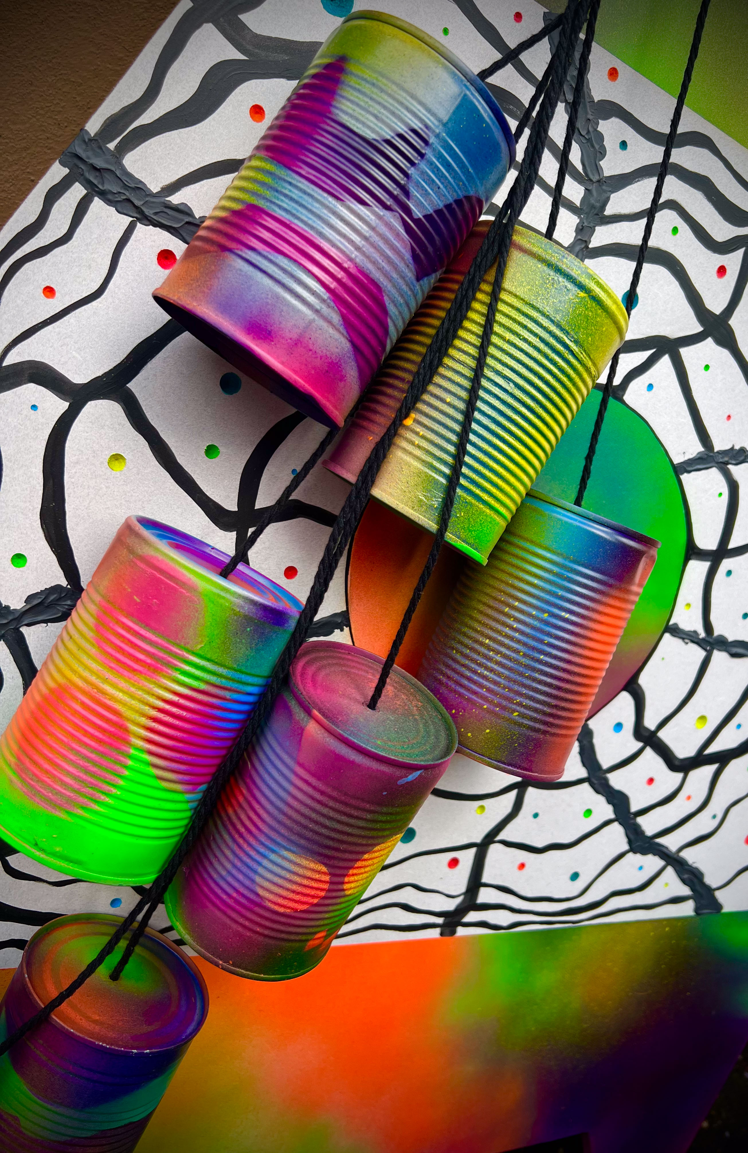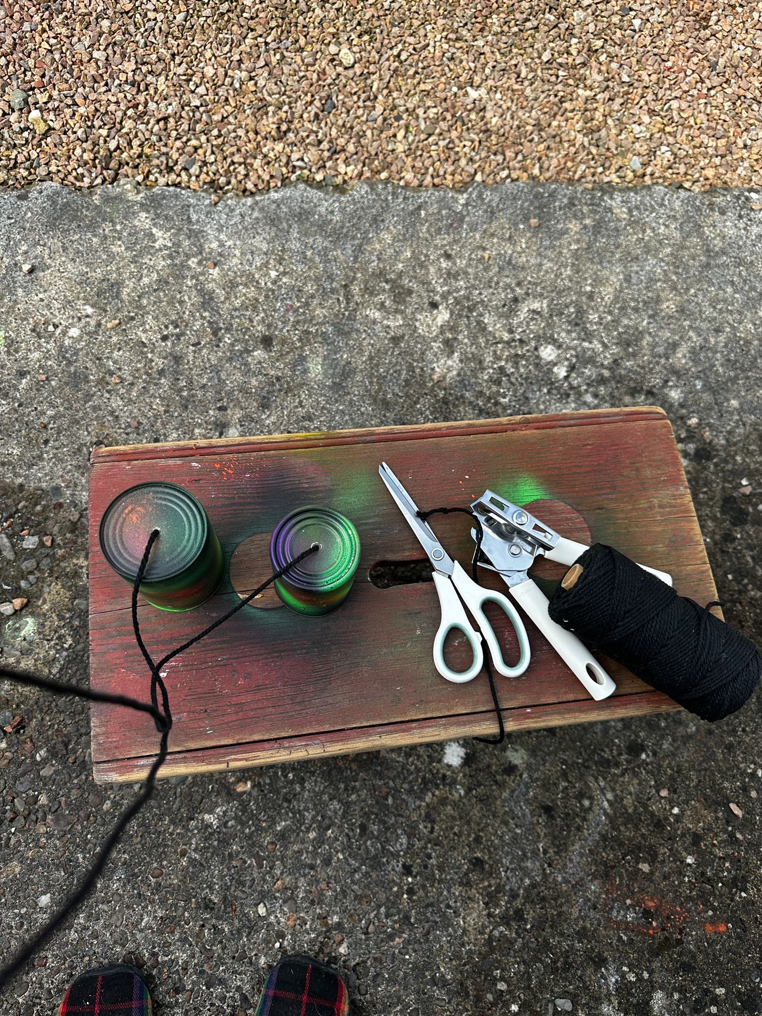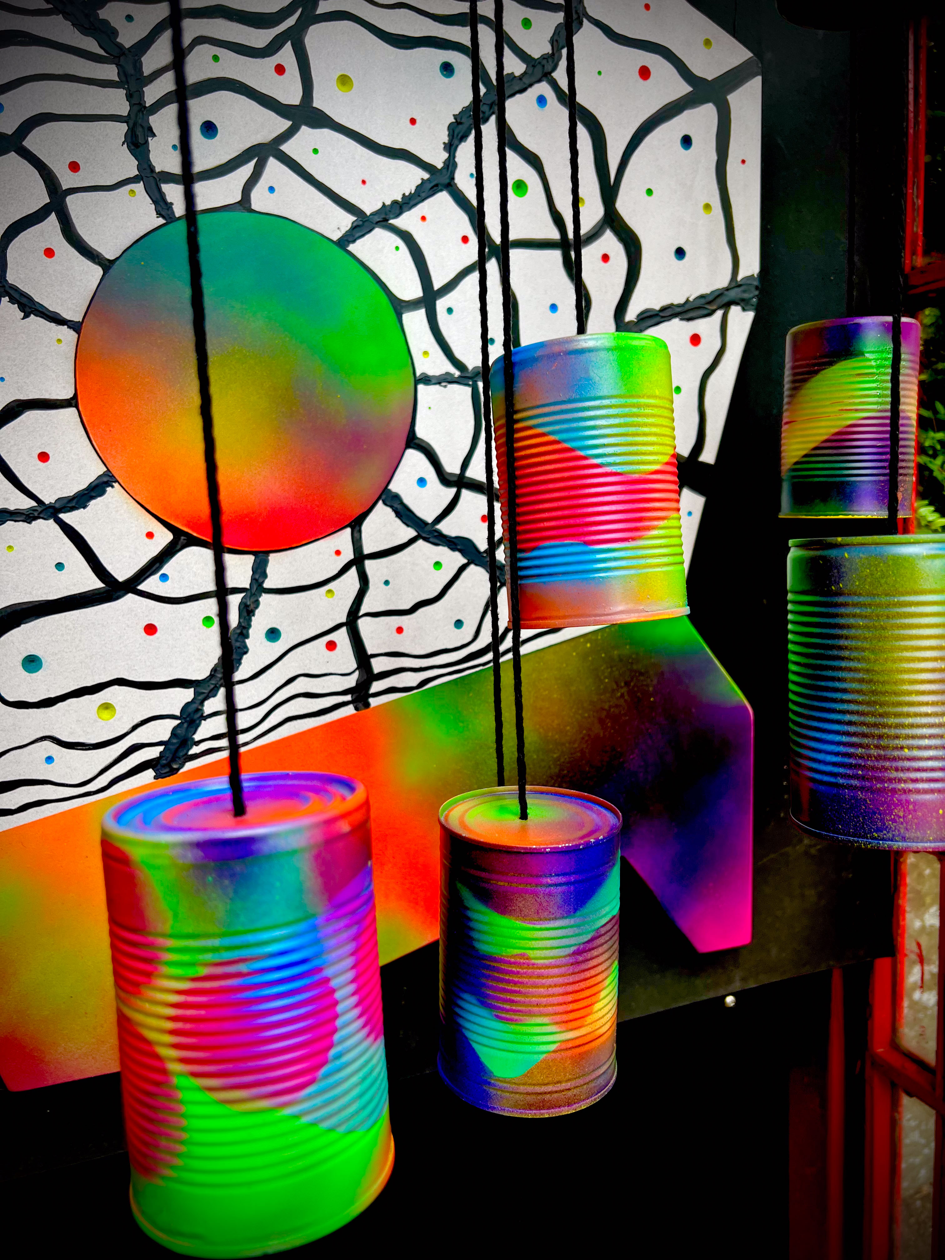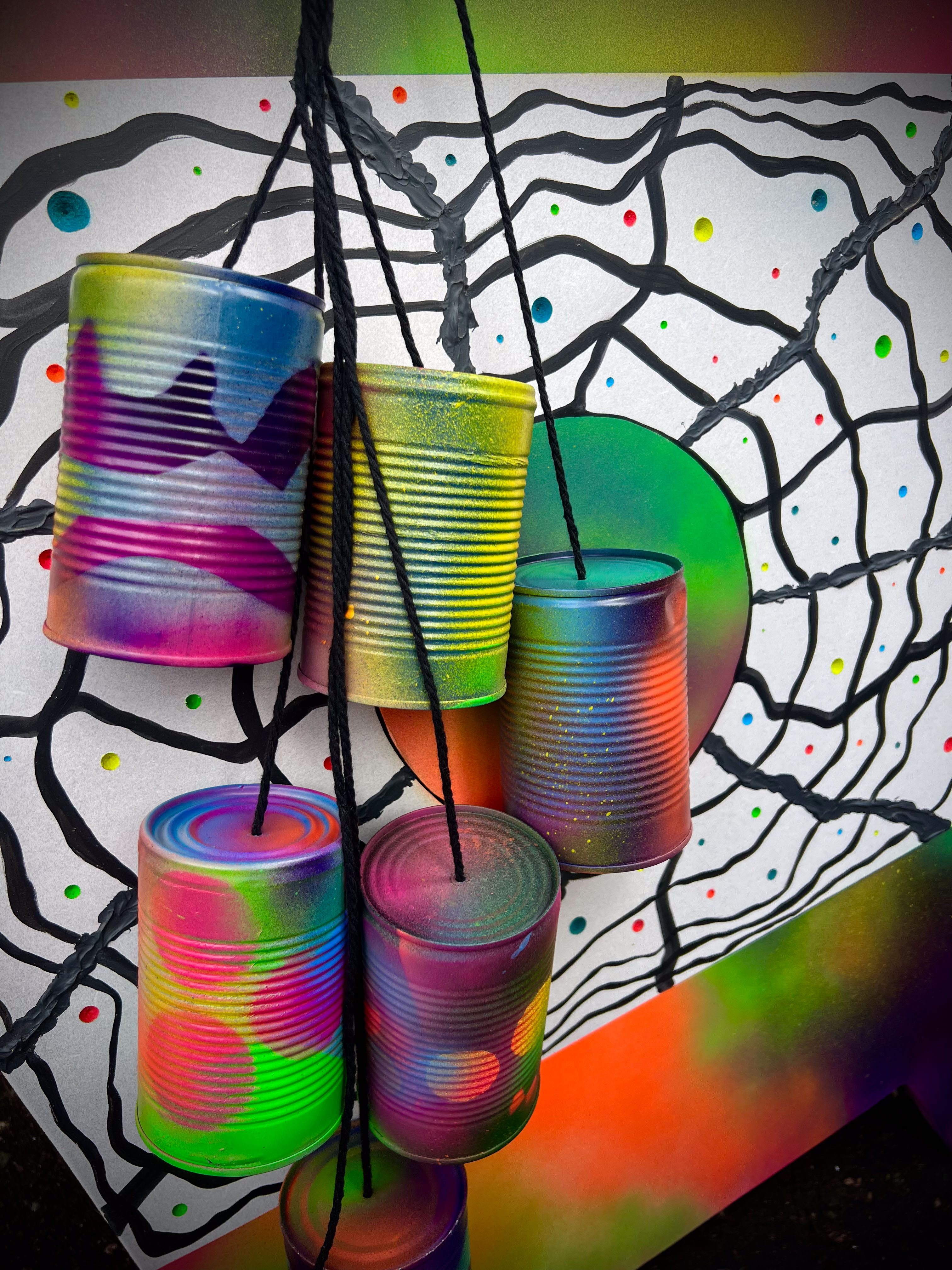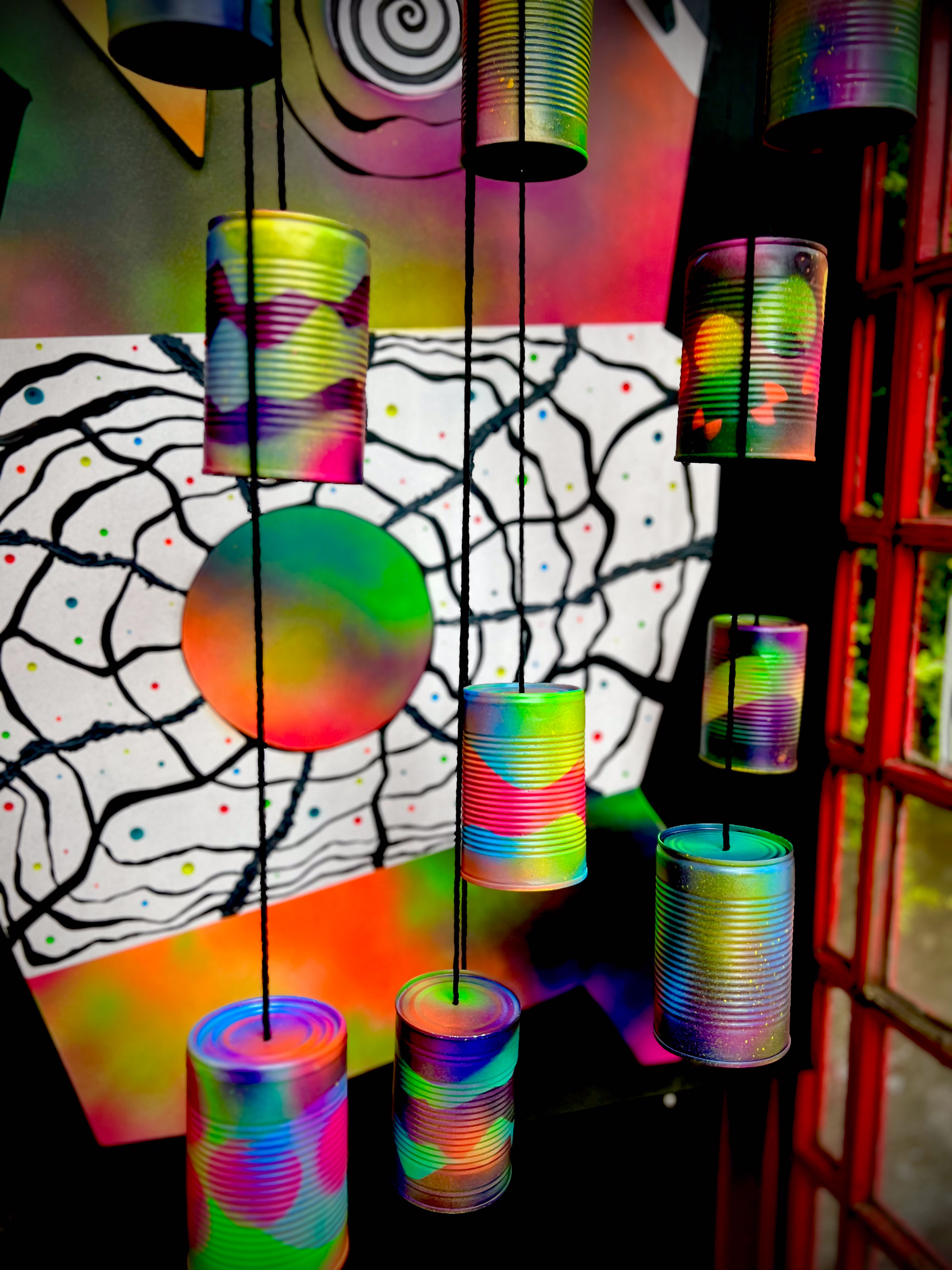 This artwork is designed to be interacted with. Try using the cans to listen to someone. (Access to the gallery from the 17th August). Share your thoughts and images using the hashtag #128TBG