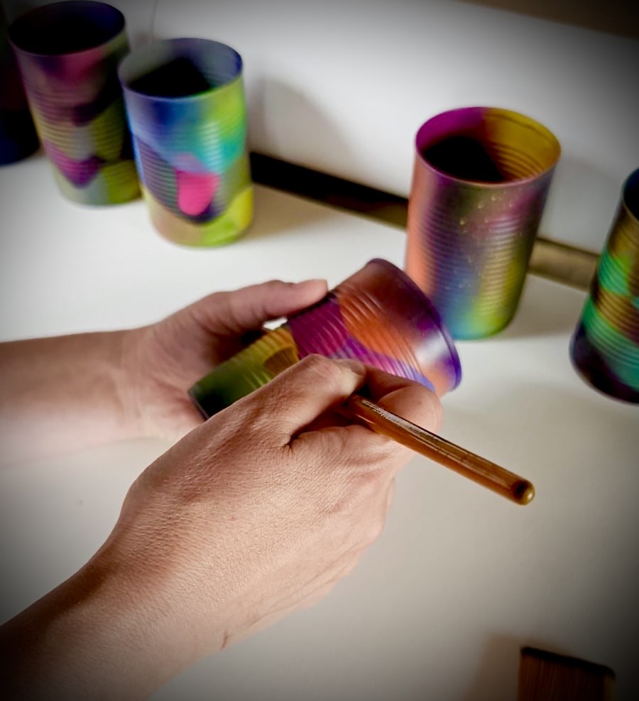 “As a contemporary artist, my practice is to create colourful, vibrant, and visually interesting artworks, exploring the multifaceted and complex range of emotions, perceptions, traits, and tendencies which define the human condition. Themes of mental health, gender, and identity permeate my work. I am motivated by the need to channel, manage, and direct my own thoughts and emotions. While my works are predominantly autobiographical in nature, there are many themes which resonate within, and without, the human experience. Art and mental wellbeing go hand in hand for me, with this in mind I find I am driven to make sculptural and interactive artworks, with tactile, sensory, and brightly coloured elements to inspire joyfulness and playfulness in the viewer/user. When we play we are transported back to earlier days in our lives, when perhaps we found it easier to be exactly who we are without fearfulness or insecurity. I am developing a personalised visual language with which to fully explore these themes, using a mixture of colour, shape, texture, and interactivity.