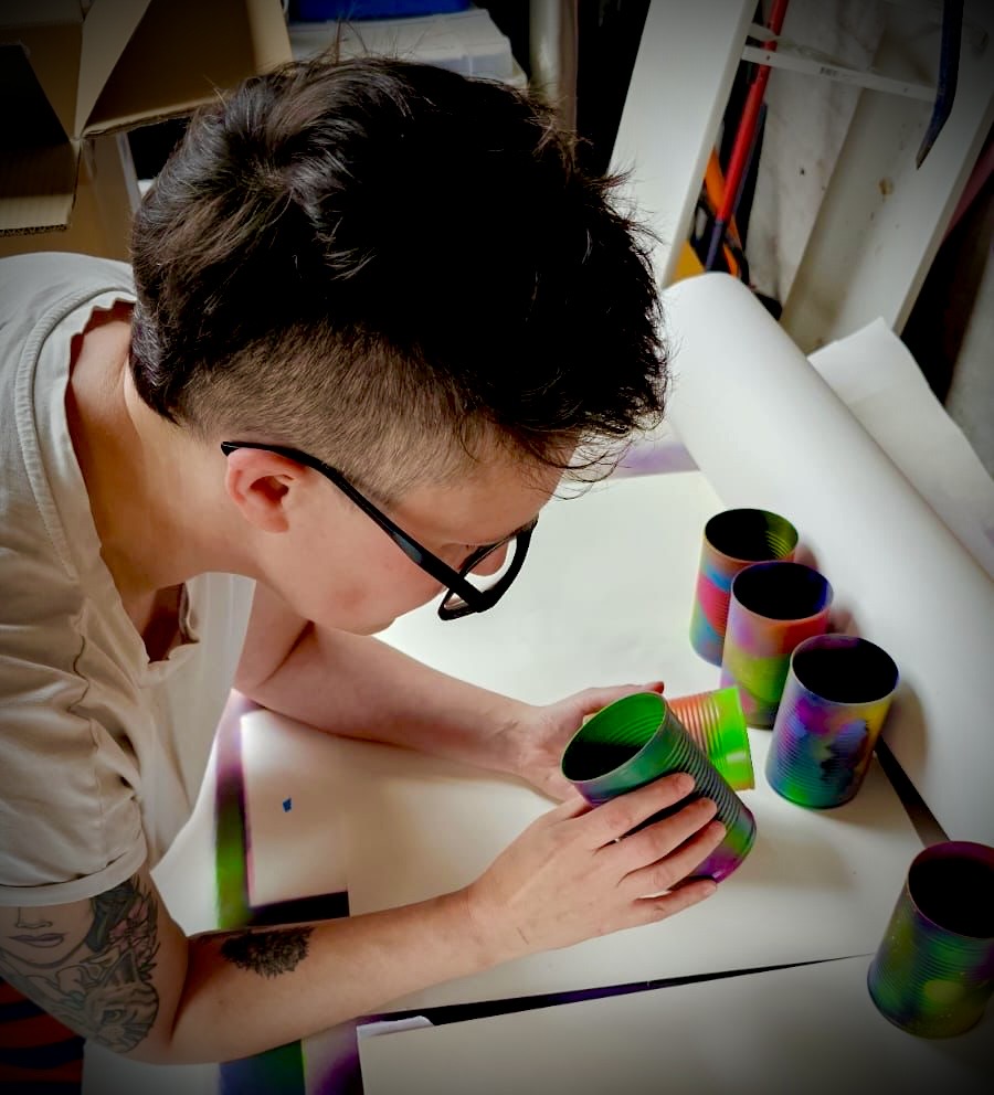 I am a Perth based, Scottish contemporary artist. After 20 years as a health professional in the NHS, I have been honing my skills as a full time art student, studying towards a BA Honours in Art & Contemporary Practices at Perth UHI. I use a range of media to explore my ever expanding visual language, including painting, drawing, sculpture, digital mediums, and photography. I am interested in almost everything, and believe that anything can be a source of inspiration, artistic or otherwise. I explore and abstract my own thoughts, feelings, desires, and emotions through art as a form of therapy. The belief that the creative arts act a universal equaliser, regardless of gender, race, sexuality, or socio-economic background is at the core of my artistic practice.’