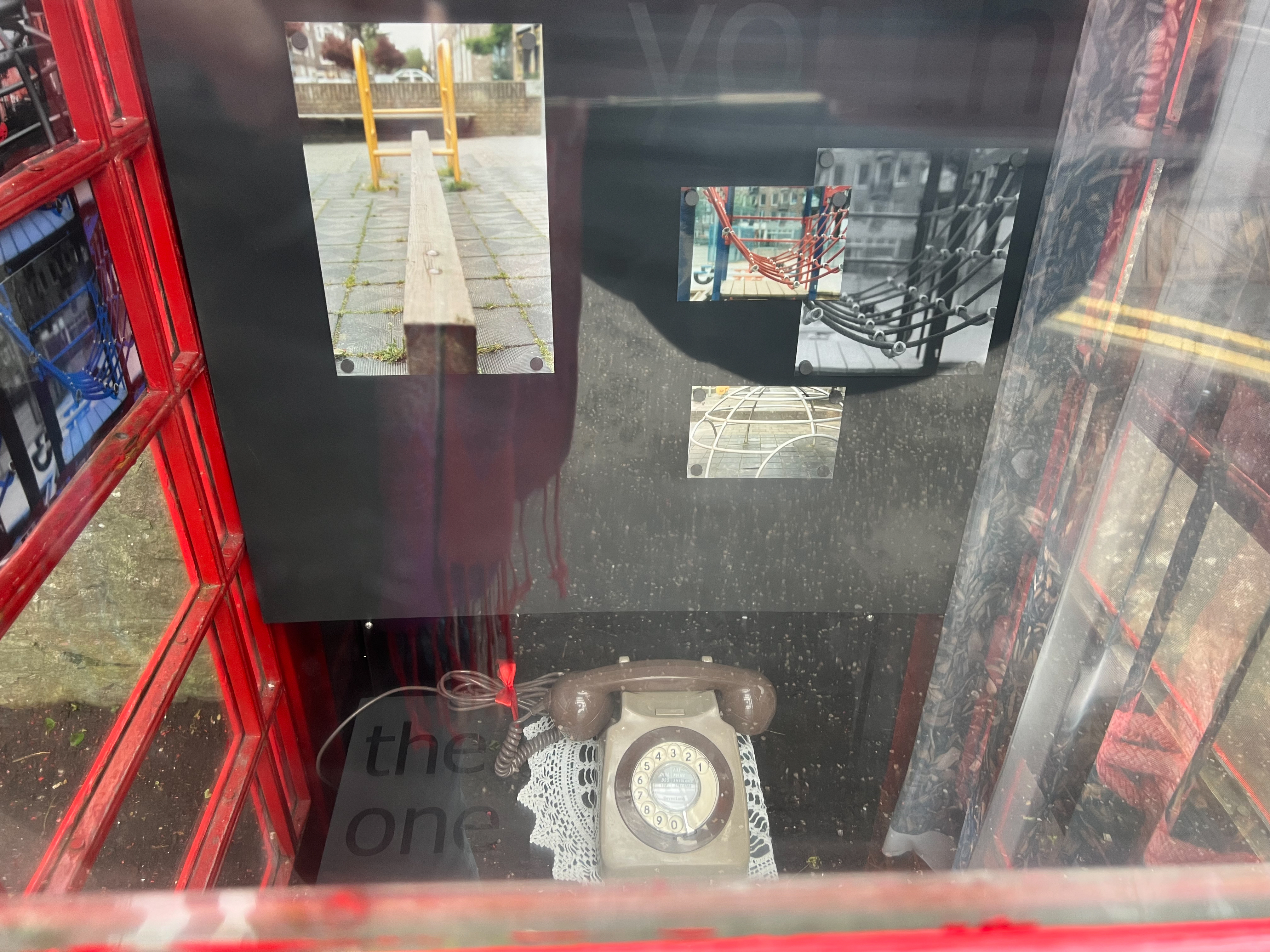 Every time Wilson creates an artwork, she tells a story: about a world containing fragments, leftovers from the past, artefacts of new discoveries – elements put together and composed especially for its location (here, inside a red telephone box).
