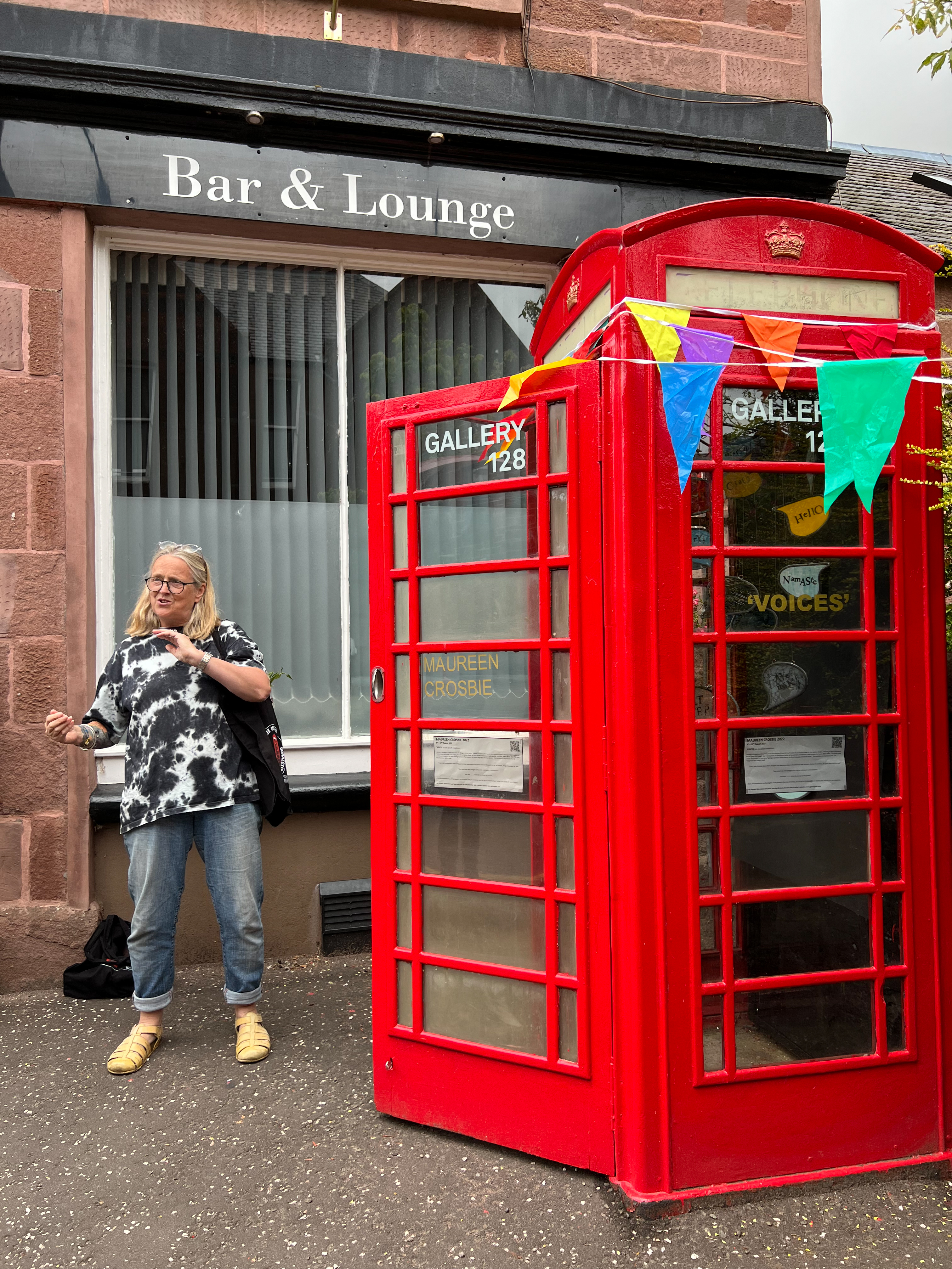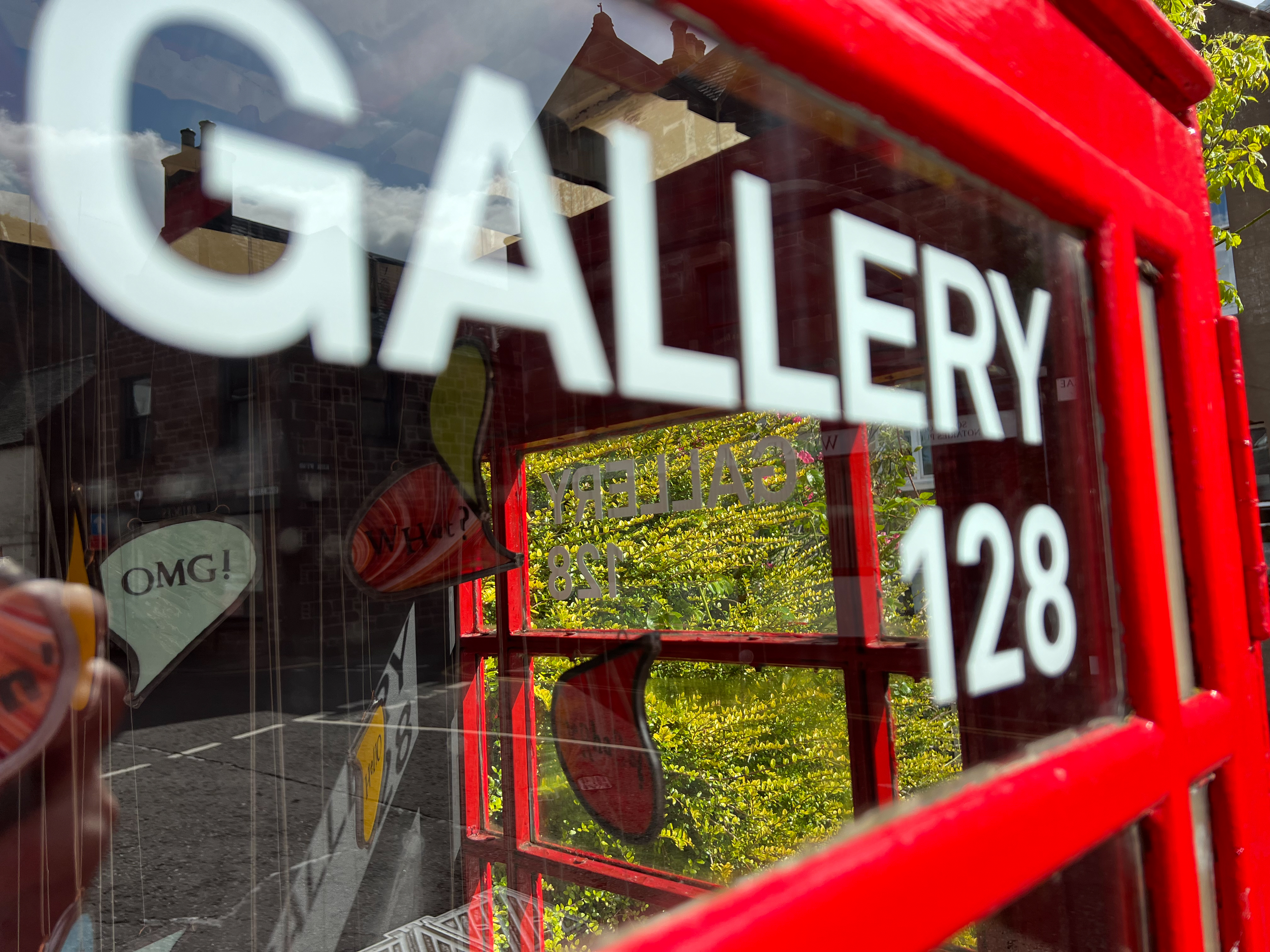 She often uses words and phrases in her work, finding inspiration from poetry, the Scots language and local places. This exhibition is inspired by the 128 Telephone Box Gallery itself.