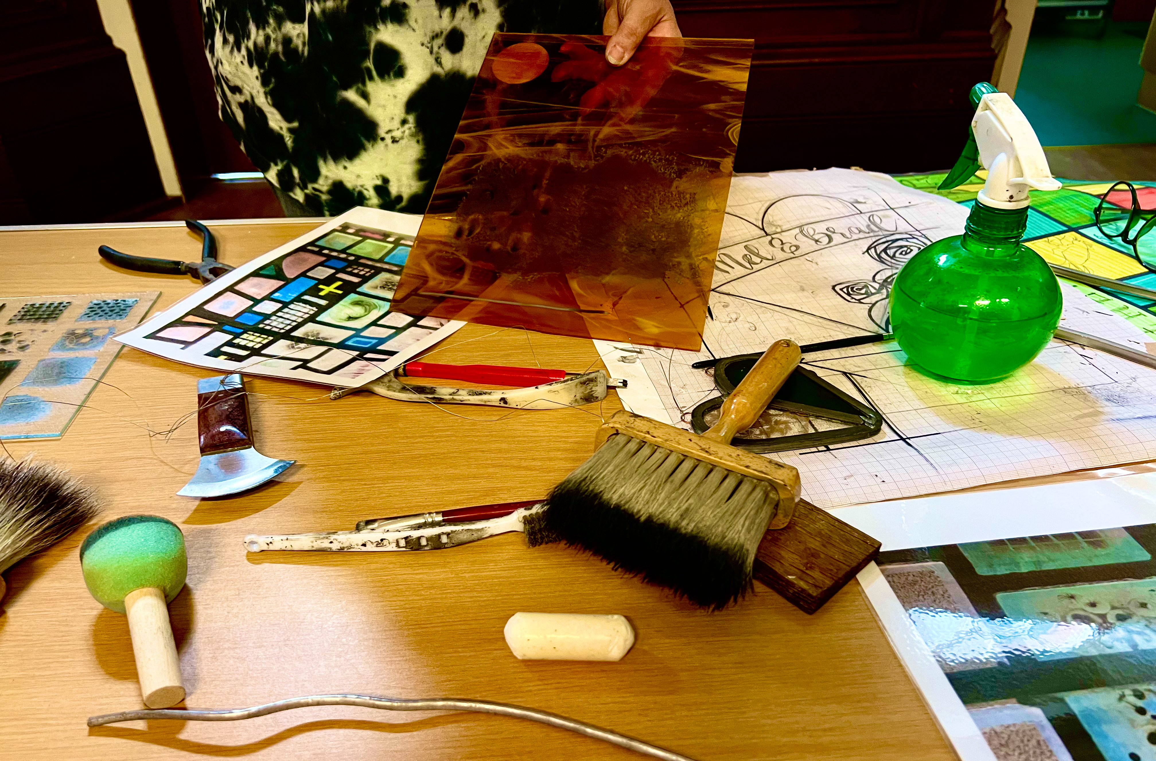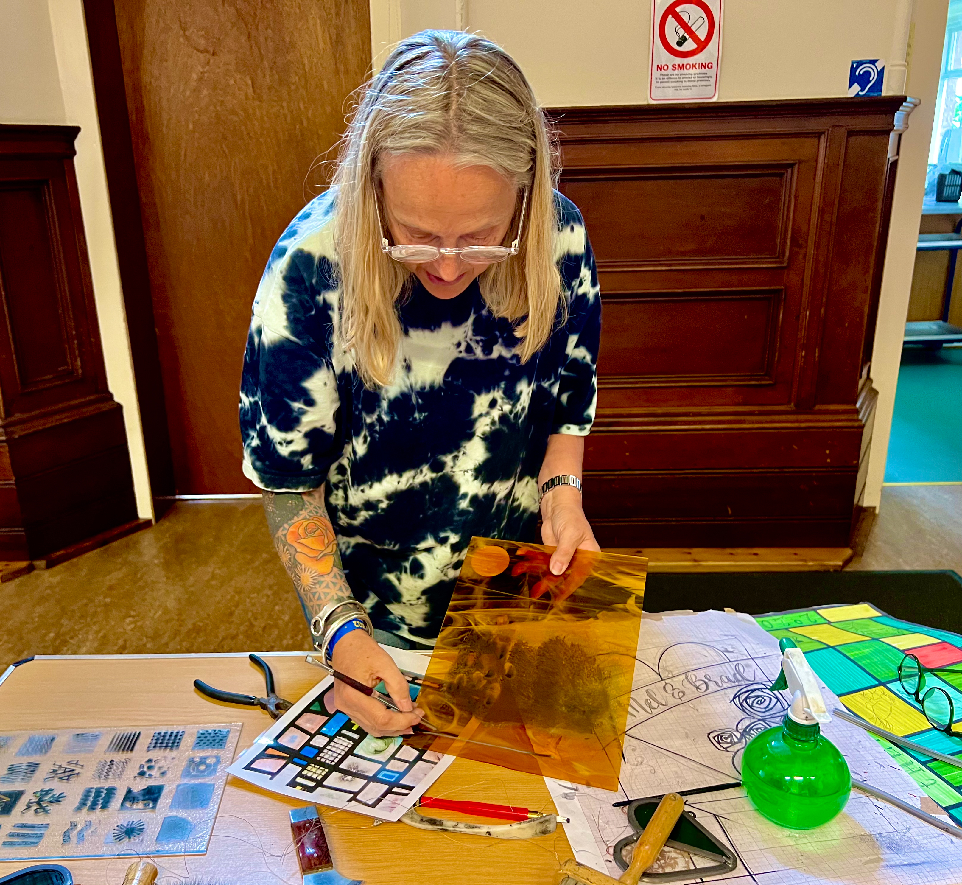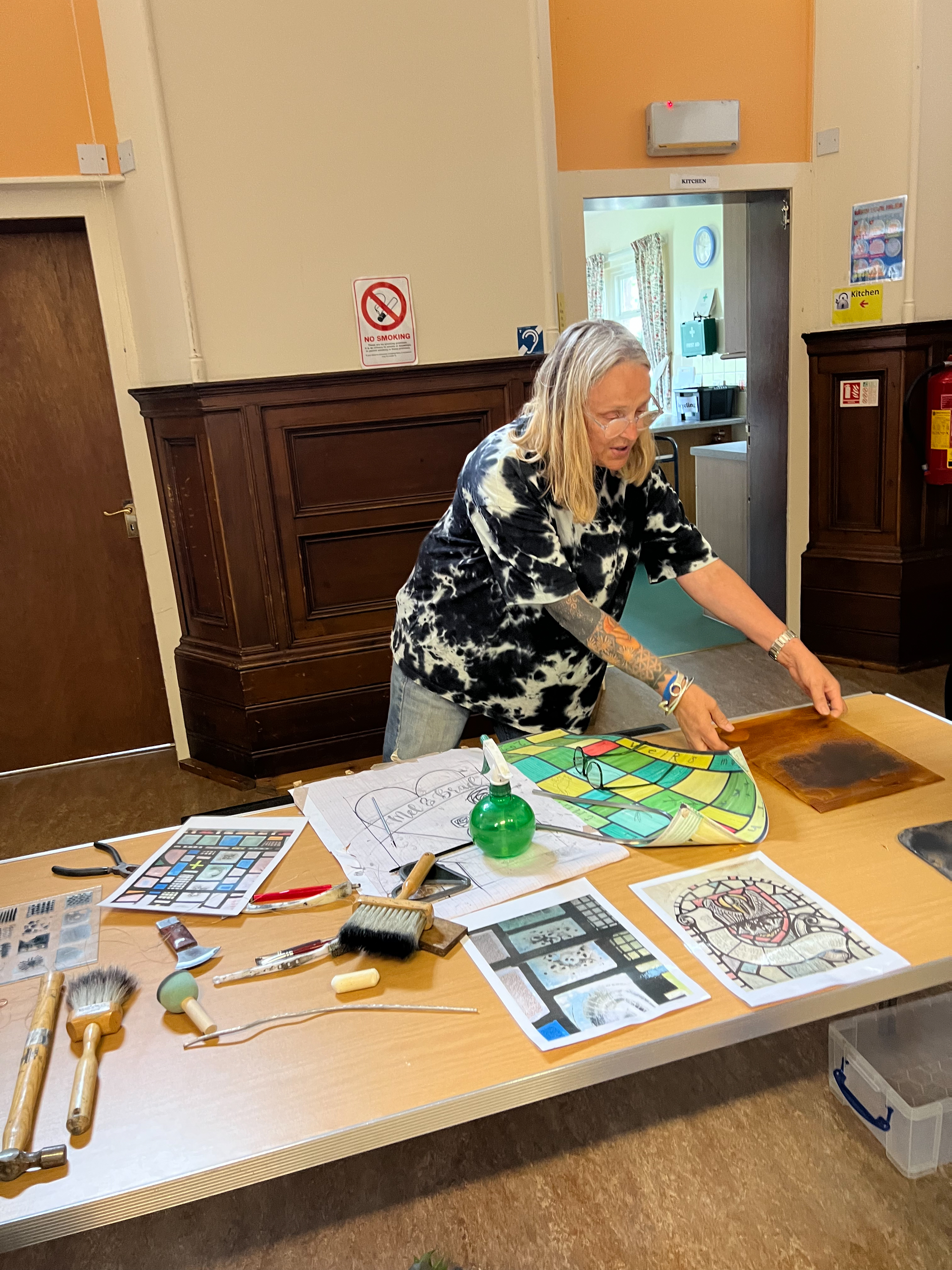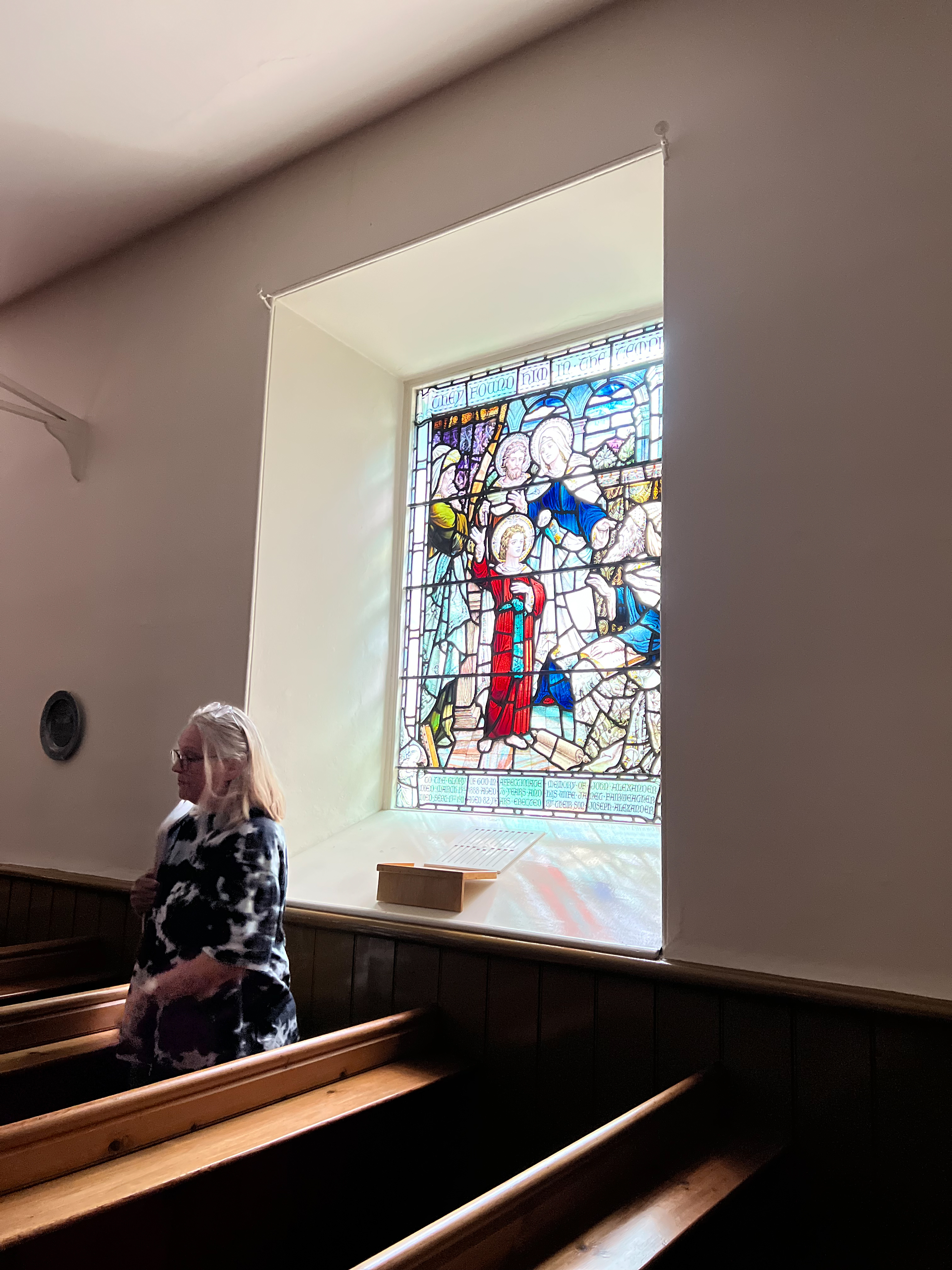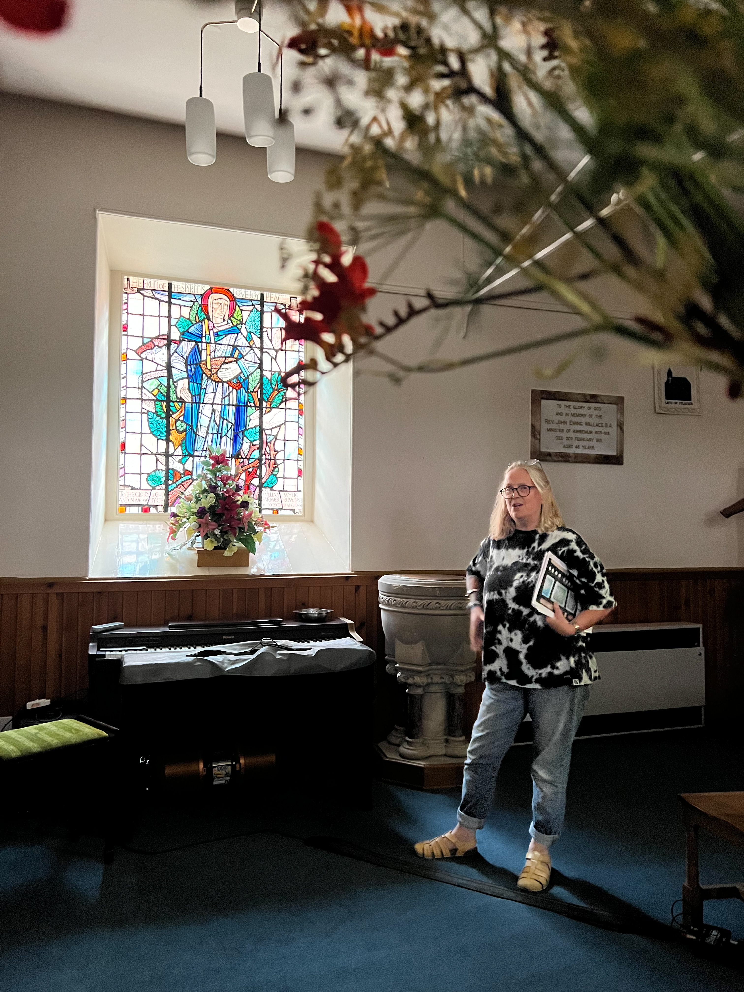 Once everyone had an opportunity to experience the installation, we proceeded to walk to Kirriemuir United Parish Church for a unique opportunity to see its extraordinary stained glass windows. Many of these were created by stained glass artist William Wilson inspired by the style of William Morris‘s arts and craft movement. Following the tour Crosbie also delivered a detailed hands-on demonstration of her process which she also linked to Wilson’s own processes. A jaw-droppingly long process that requires great skill, tenacity, mastery and artistic ability. What a day!